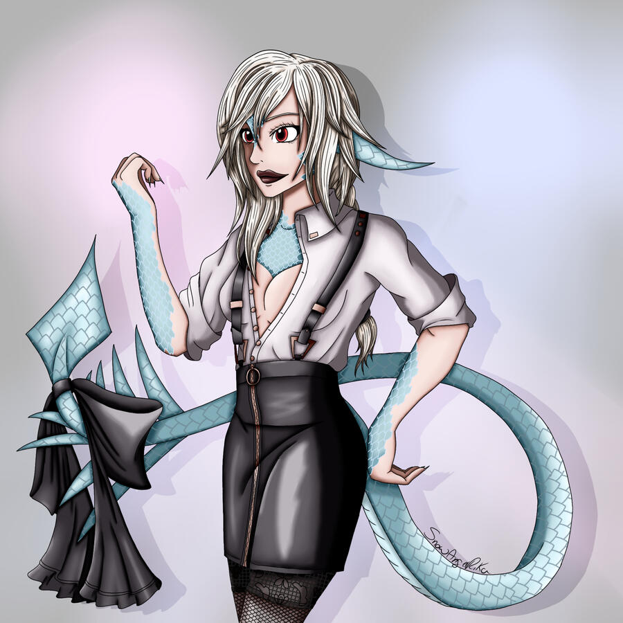 Vulispa's scales will appear like an average raen to most if she is in a new environment or visiting the East but if she removes the glamour the hides her scales see below