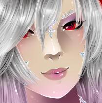 Her eyes are a deep red with scarlet umbral rings that will glow when her emotions are high or using her aether