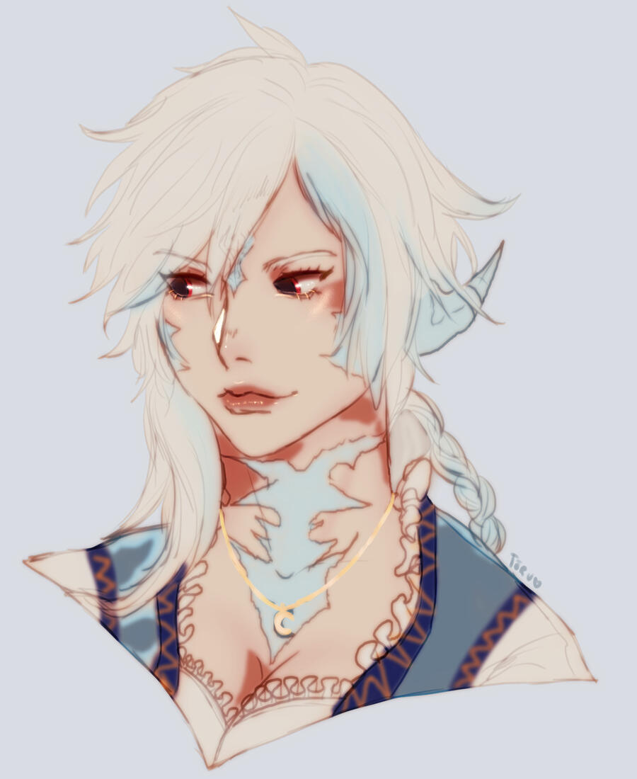 The Legend of Raen kissed by the Moon is told to children of Hingashi. A Mystical Clan of powerful Raen who appear in times of great need to help those in trouble and then disappear again when their job is done. They were said to be great warriors steeped in magic, descendants of the Dawn Father and the Moon. Xaela Tribes have often rejected this folklore as it implies a raen is a child of Nhaama the Dusk MotherTheir magic always brought balance back to the Hydaelyn, bless with the power sense the ebb and flow of life around them and their innate ability to correct imbalances of the star. They were said to immune to forces that tried to corrupt this starTheir scales were said to glow in the moonlight which led to term 'Kissed by the Moon', brilliant white with tints of blue, resembling the said moon they are said to be descended from.The Clan was nomadic, appearing here and there from the Eorzea to the far East. When the Empire started invading its neighbours this clan seemed to disappear overnight and have never been seen since.